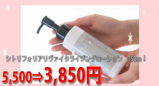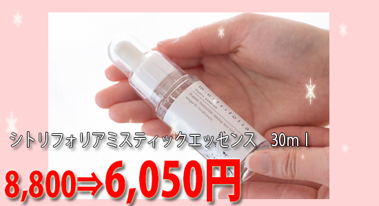 トップページ 大感謝セール <シトリフォリア 23周年記念SALE> 3月20日、21日、22日、 3日間限定 大感謝祭開催いたします! ≪3日間の限定割引≫ 2025年3月20日(金)0:00~2025年3月22日(日)23:59 当店1番人気スキンケアシリーズ シトリフォリア基礎化粧品 全品感謝セール! 11,000円以上のお買い物で クリーミーペーストプレゼント ノンケミカル・科学防腐剤無添加のクレンジングフォーム 洗顔フォーム【elegant cleansing foam】 肌が飲み干す、高濃度セラミドの潤い水 化粧水【rivitalizing lotion】 ハジける肌へ、包んで守る透明のヴェール 美容乳液【sparkling faicial emulsion】 艶めくエイジレス美肌に、とろける蜜の雫 美容液【mystic essence】 年に一度のシトリフォリアセール、今年も開催いたします。 皆さんのご利用を心より感謝しております。 今後もナチュラルコスメティクスバーの末長いご愛顧を どうぞよろしくお願い申し上げます。 ナチュラルコスメティクスバー スタッフ一同 商品一覧 該当商品はありません
